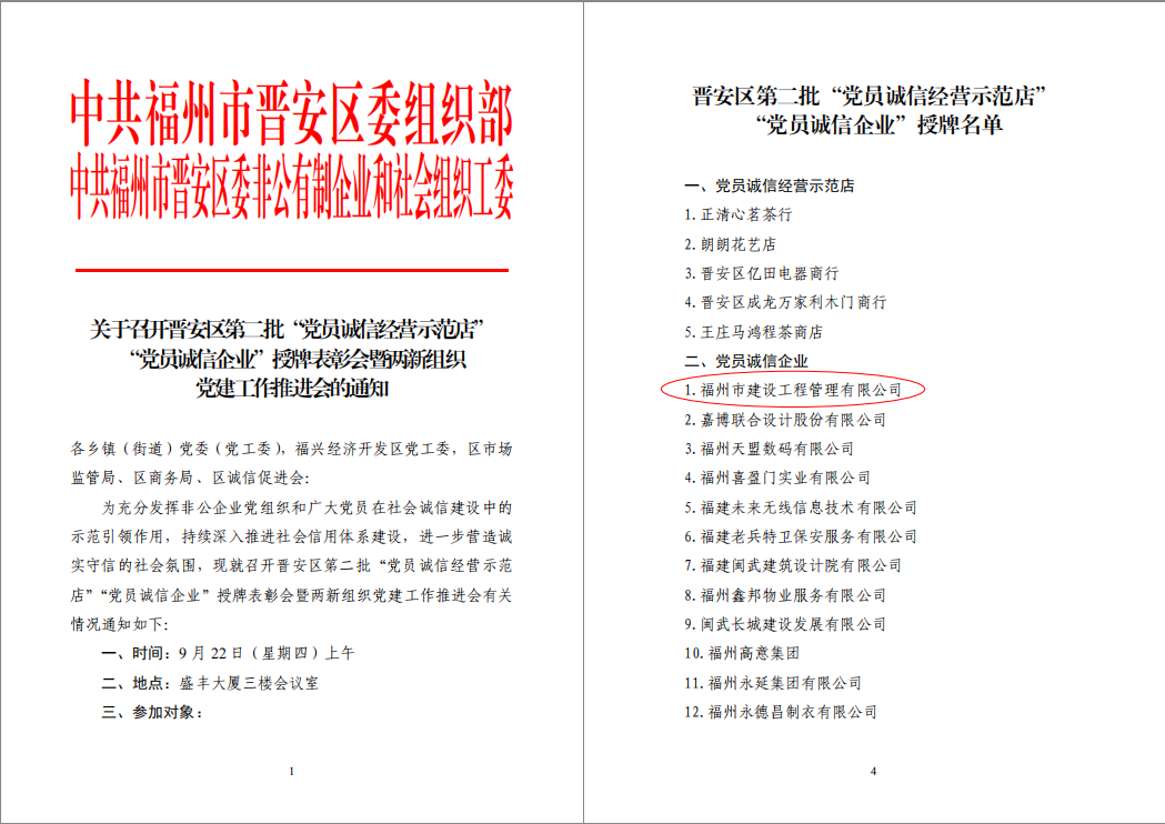 9月22日上午,晉安區(qū)委組織部等部門聯(lián)合舉辦晉安區(qū)第二批“黨員誠信示范店”“黨員誠信企業(yè)”授牌表彰會,我司榮獲“黨員誠信企業(yè)”榮譽(yù)稱號。這個(gè)稱號是對我司長期以來誠信經(jīng)營的肯定,也是對我們今后堅(jiān)持誠信合法經(jīng)營的一種鞭策。